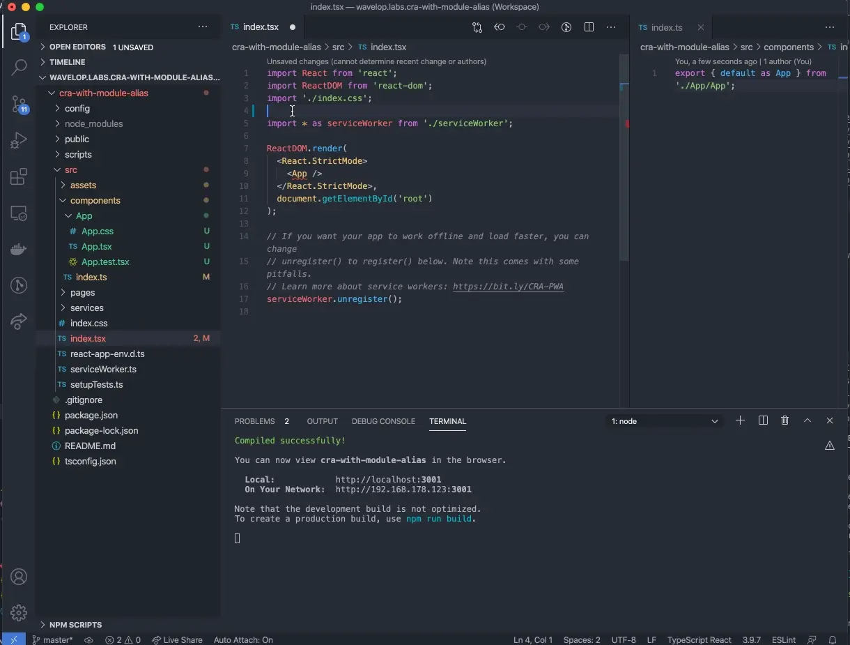 Create React App: importare moduli utilizzando gli alias con Webpack e Typescript